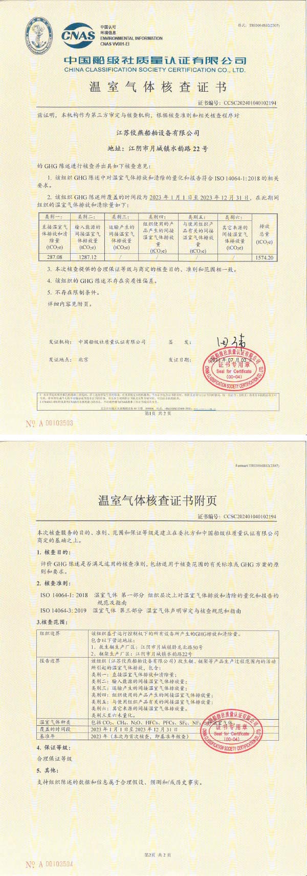 温室气体核查证书